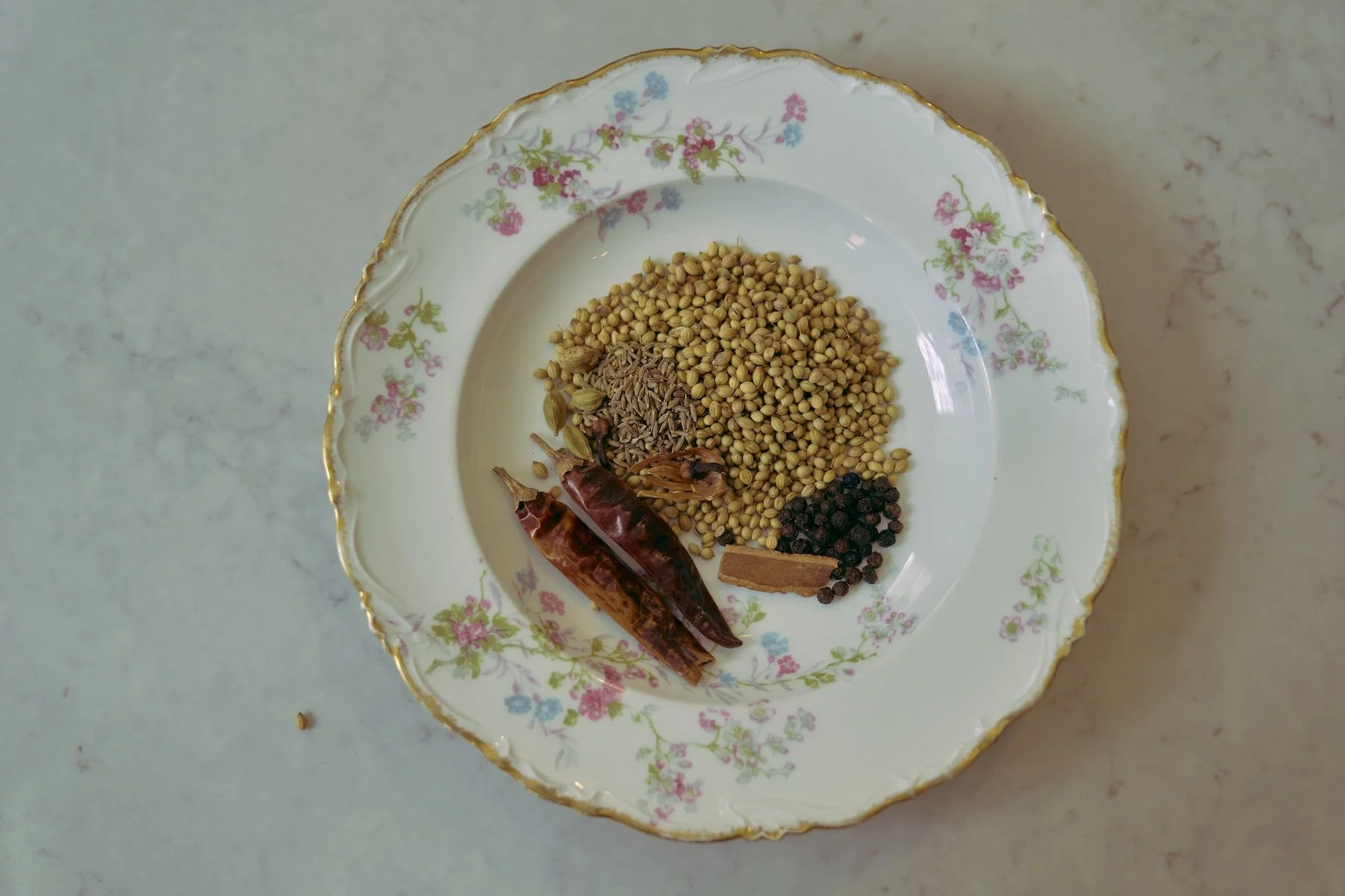 Chopra’s family would prep and marinate around twenty quails for the meal. The women would grind the hand-roasted spices on a silbatta. These spices are what make Awadhi cuisine special, and markedly different from other North Indian cuisines: they are balanced and aromatic rather than spicy and robust. This dish uses cardamom, cloves, and cumin; fiery garam masala and red chili powder are noticeably missing.