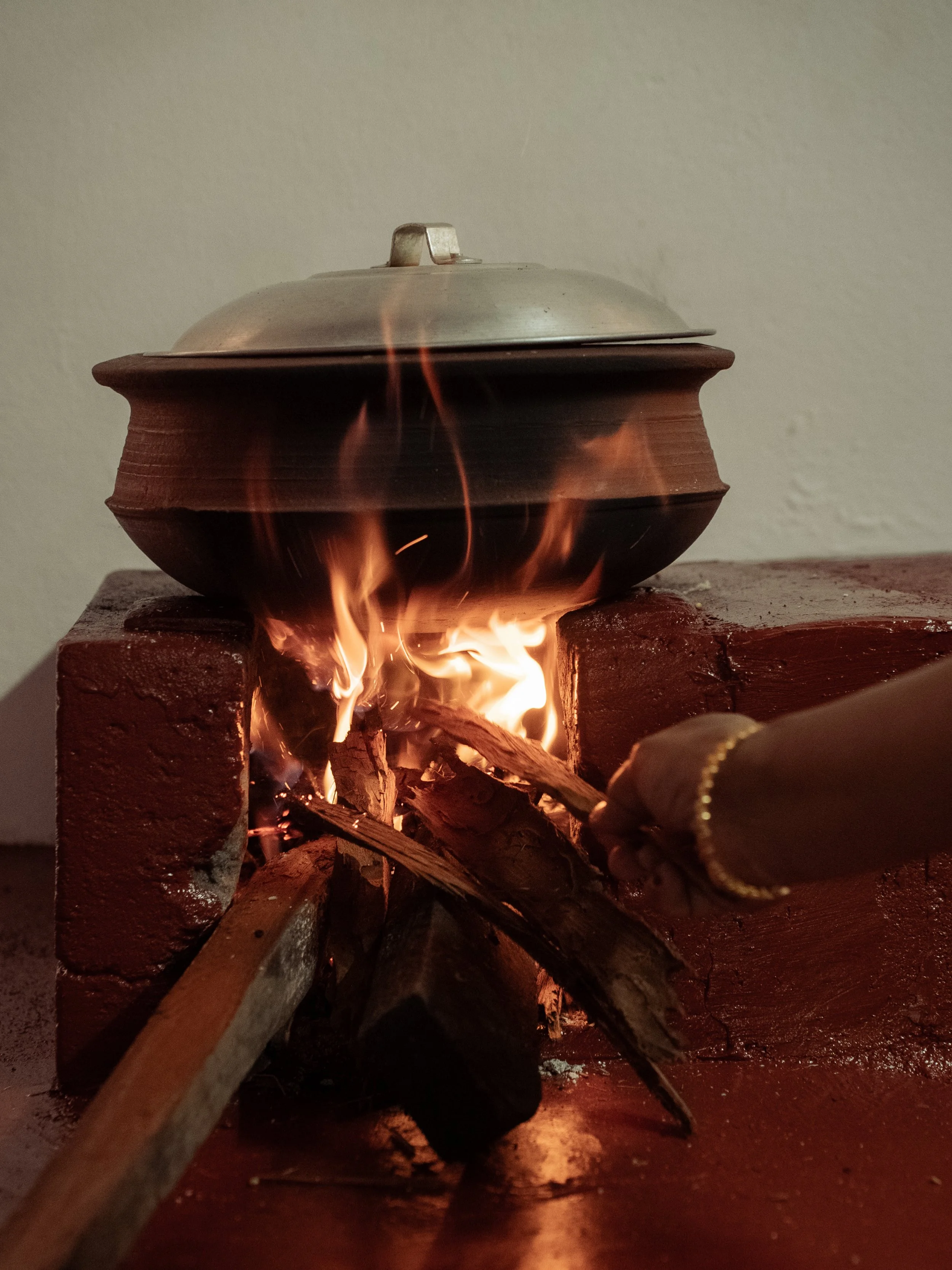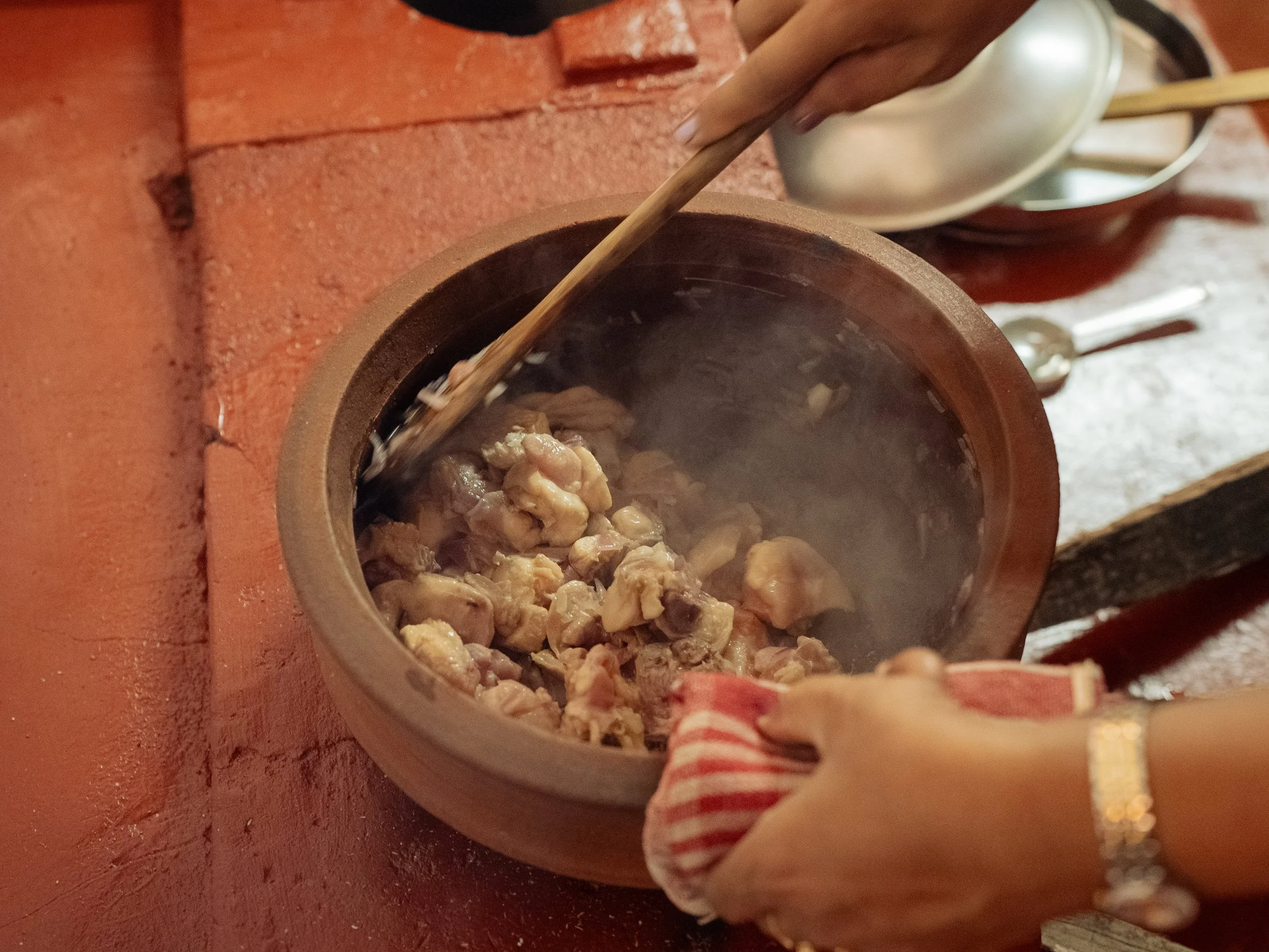Her sister and mother are her sous chefs today. “My grandmother loved to make kori gassi for all of us. I remember her cooking it in a clay pot over a wood fire. She knew what each of us liked, so she would set aside pieces for her favourites in a separate pot.” Just like her grandmother, she has also chosen to cook kori gassi in a clay pot, over a wood fire.