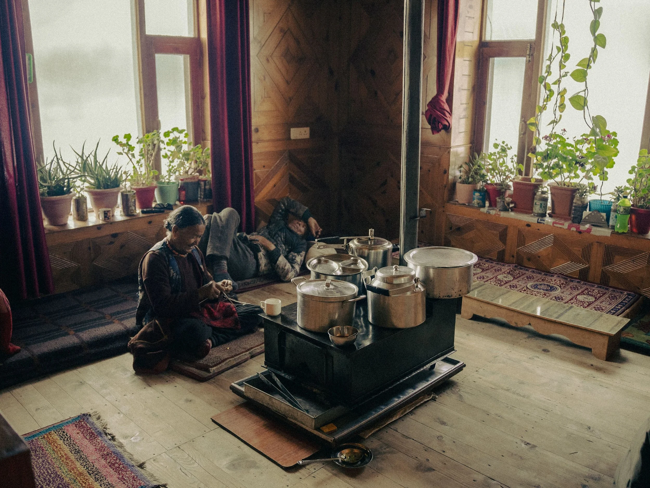 Inside the home of our host family, we are first struck by the sense of warmth, from the tandoor that occupies the central spot in the living area (a common feature of houses in the valley) and from the women huddled around the tandoor, knitting Lahauli socks. Incidentally, both the metal tandoor and the knitting technique (the socks received a Geographical Indication tag in 2021) that are now unique to Lahaul were introduced to the locals by German Moravian missionaries in the 19th century.