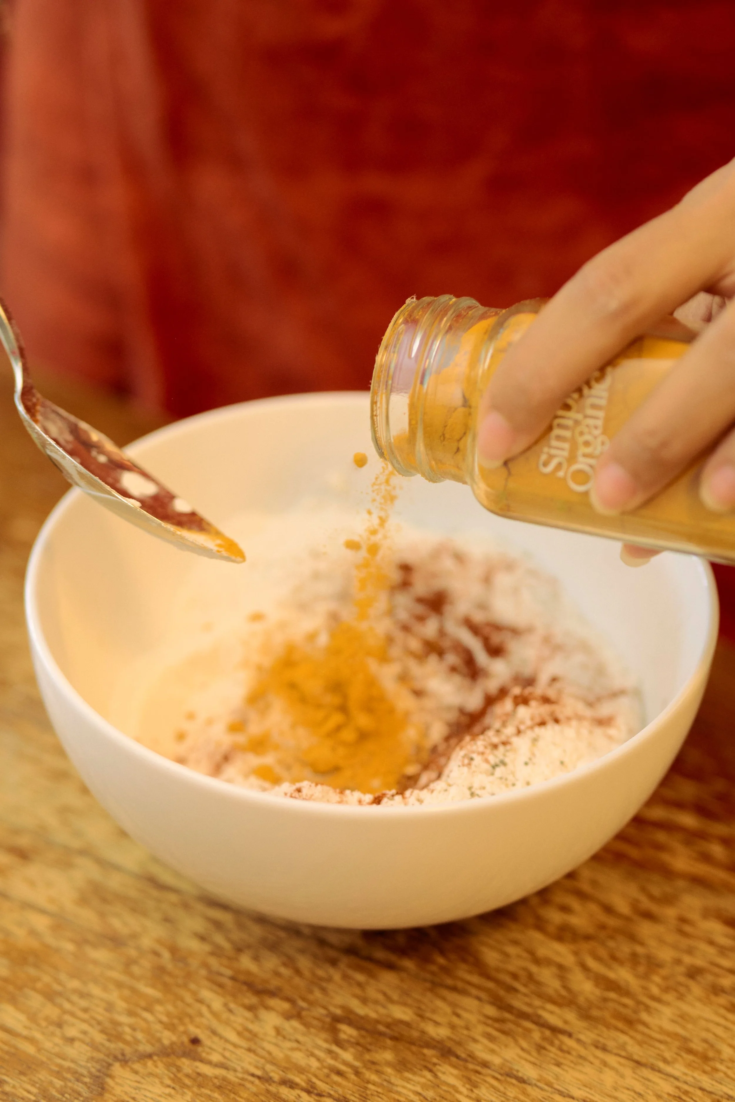 In a mixing bowl, combine the rice flour, cornflour (if using), nigella seeds, sugar, and salt.