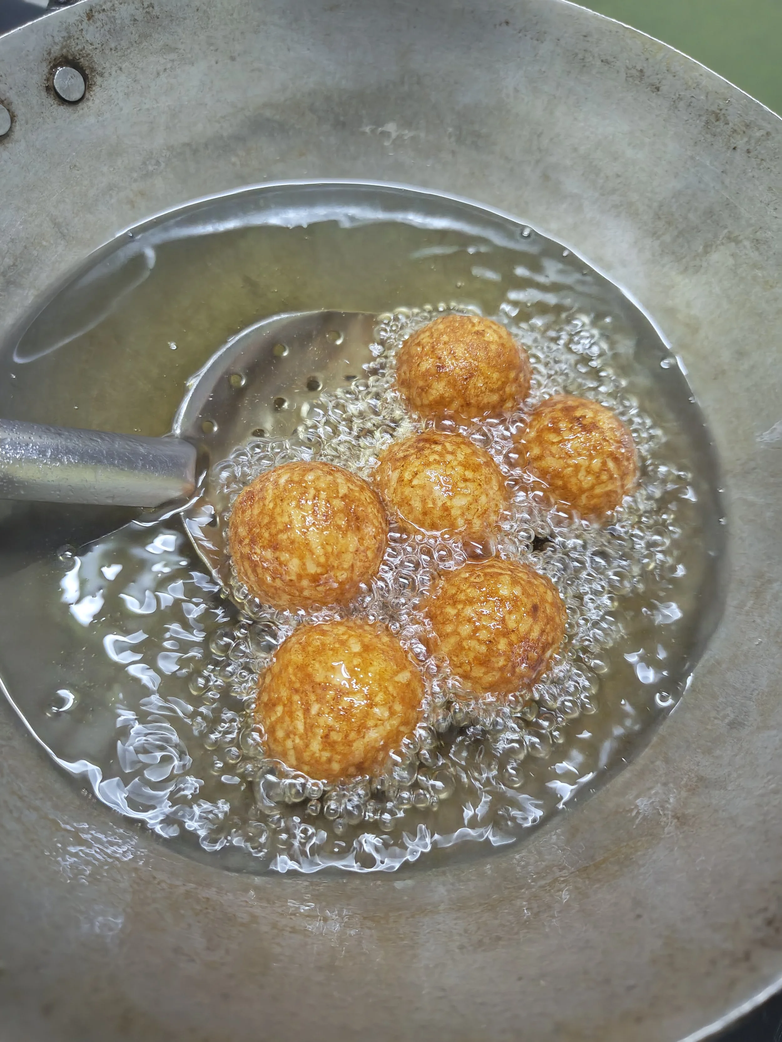 Fry the balls in oil till they are crispy and resemble gulab jamuns.