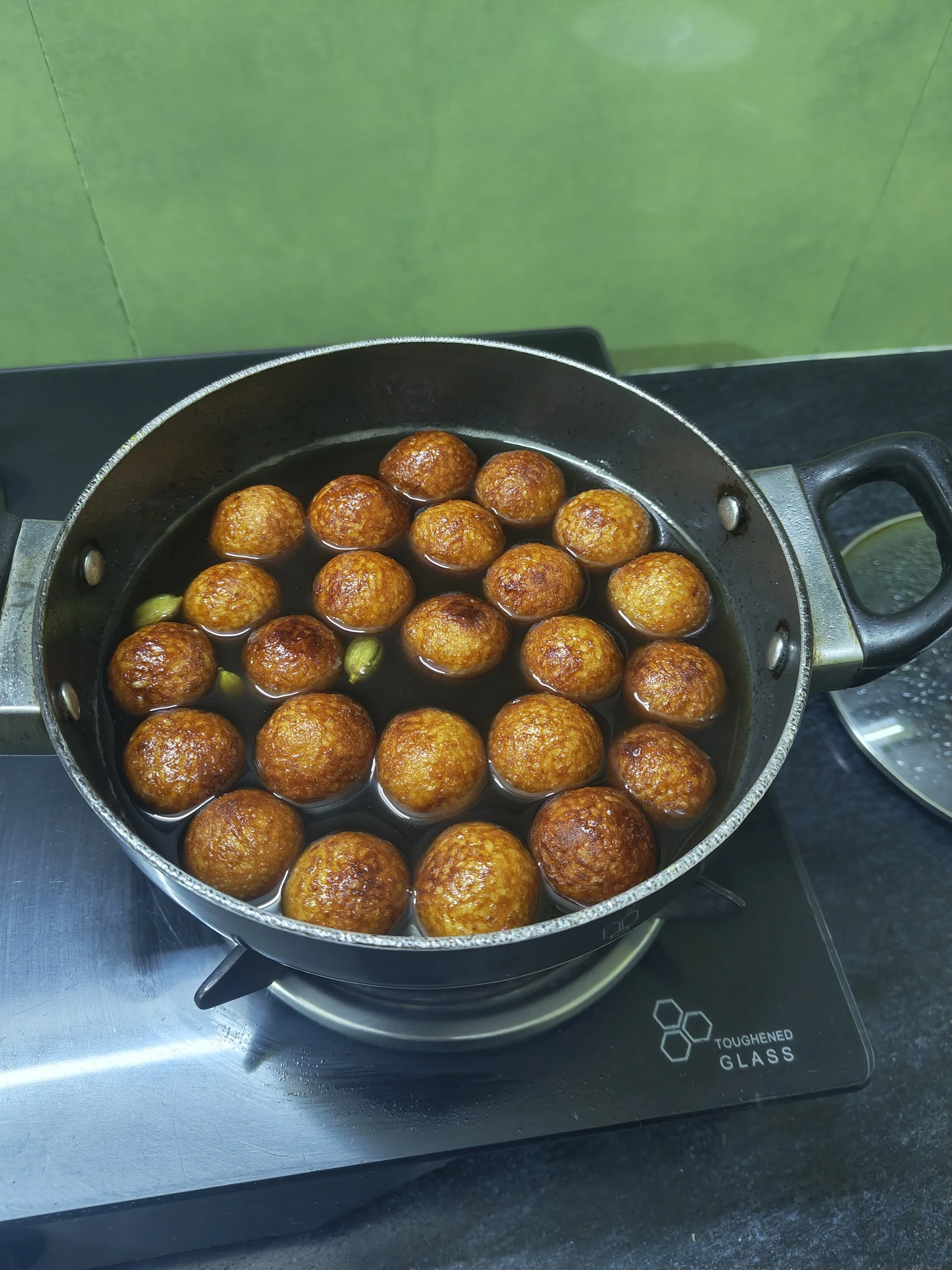 On the other burner of the stove, my mother keeps a kadhai of water where she breaks down chunks of jaggery, and dissolves it until it becomes a dark liquid. This is gur ki chashni (a jaggery syrup). Why not sugar syrup? I ask. Refined sugar used to be a luxury before the Industrial Revolution and so elders figured a way around it, she says. A hint of cardamom adds flavour, and then the fried balls go in for a soak. The sweet is served after a few hours, having become soft, pliant and incredibly tender.