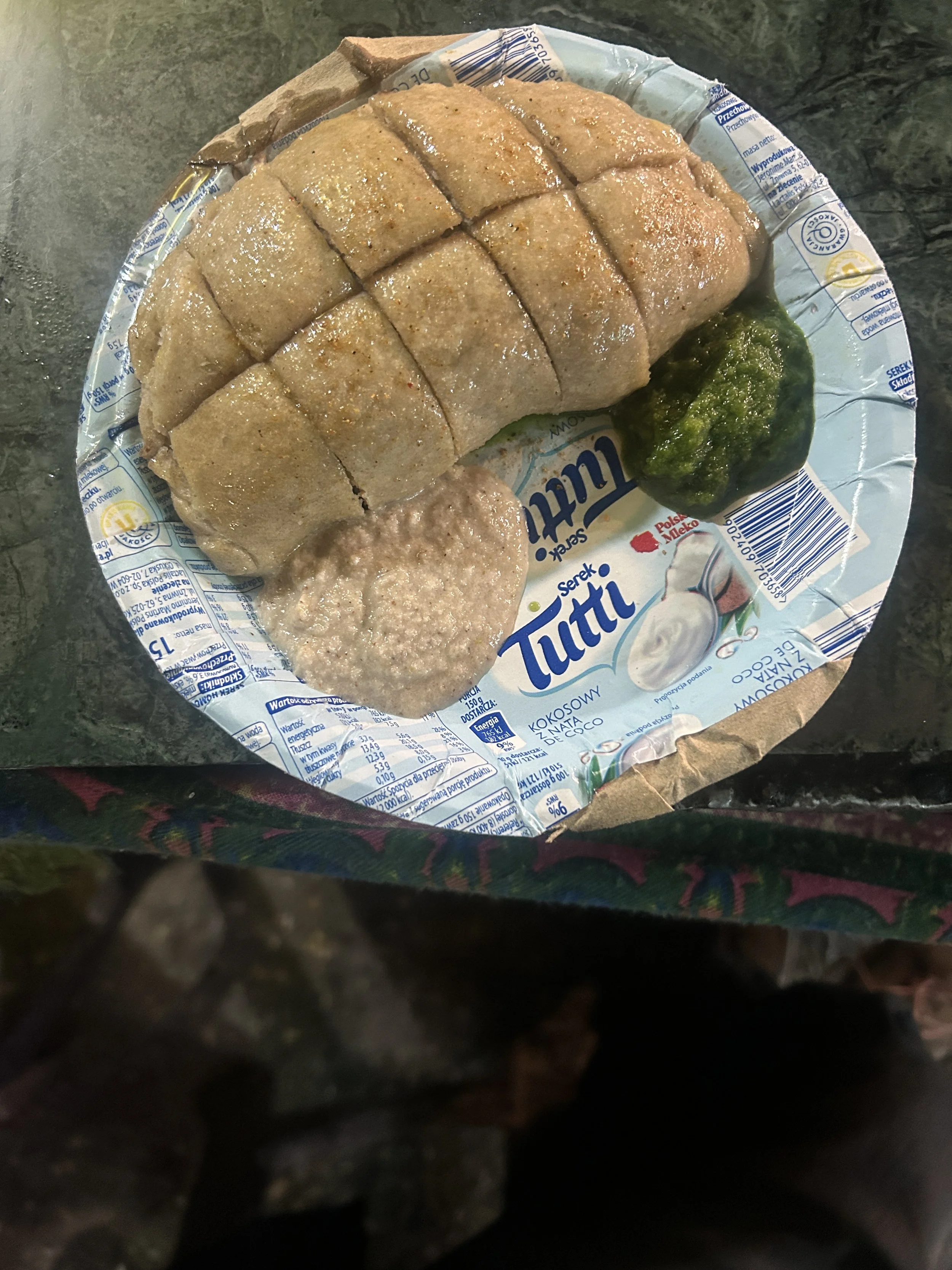 Siddu is made by fermenting whole wheat flour, mixing in yeast to a dough that is then filled with a paste made of assorted nuts: almonds, poppy seeds, peanuts, walnuts, and sesame as well as a combination of coriander, tomato and onions and spices as per taste. It is steamed, garnished with ghee, and served with assorted chutneys: green (often containing coriander and mint) and red (containing chilli and garlic). No two siddu are the same; but all siddu are equally delicious.