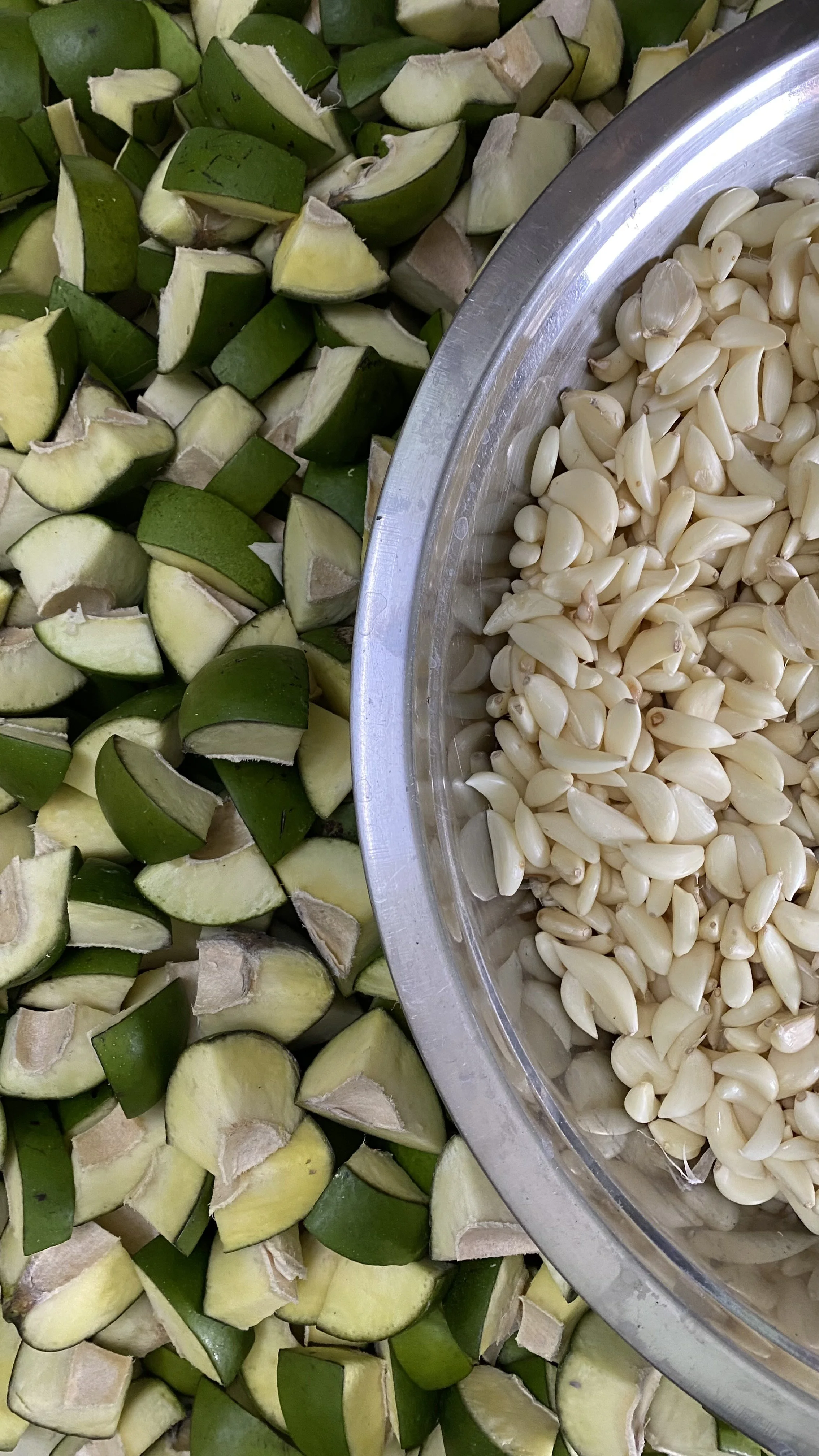 We've only been in the avakai business for about 6-7 years, but before that there was always the summer tradition of avakai making. My entire family would come together every day for weeks, making batches and varieties of avakai. Every family makes avakai differently, depending on their taste, and their tolerance for spice. My mom and I would go to Chennai when school let out for summer every year, and avakai mixing in my paternal grandparents’ house was one of my favourite parts of the trip. My cousins and I got a kick out of stealing mango chunks while cleaning them. It was a reward for all those hours of cleaning and chopping kilos of mangoes.