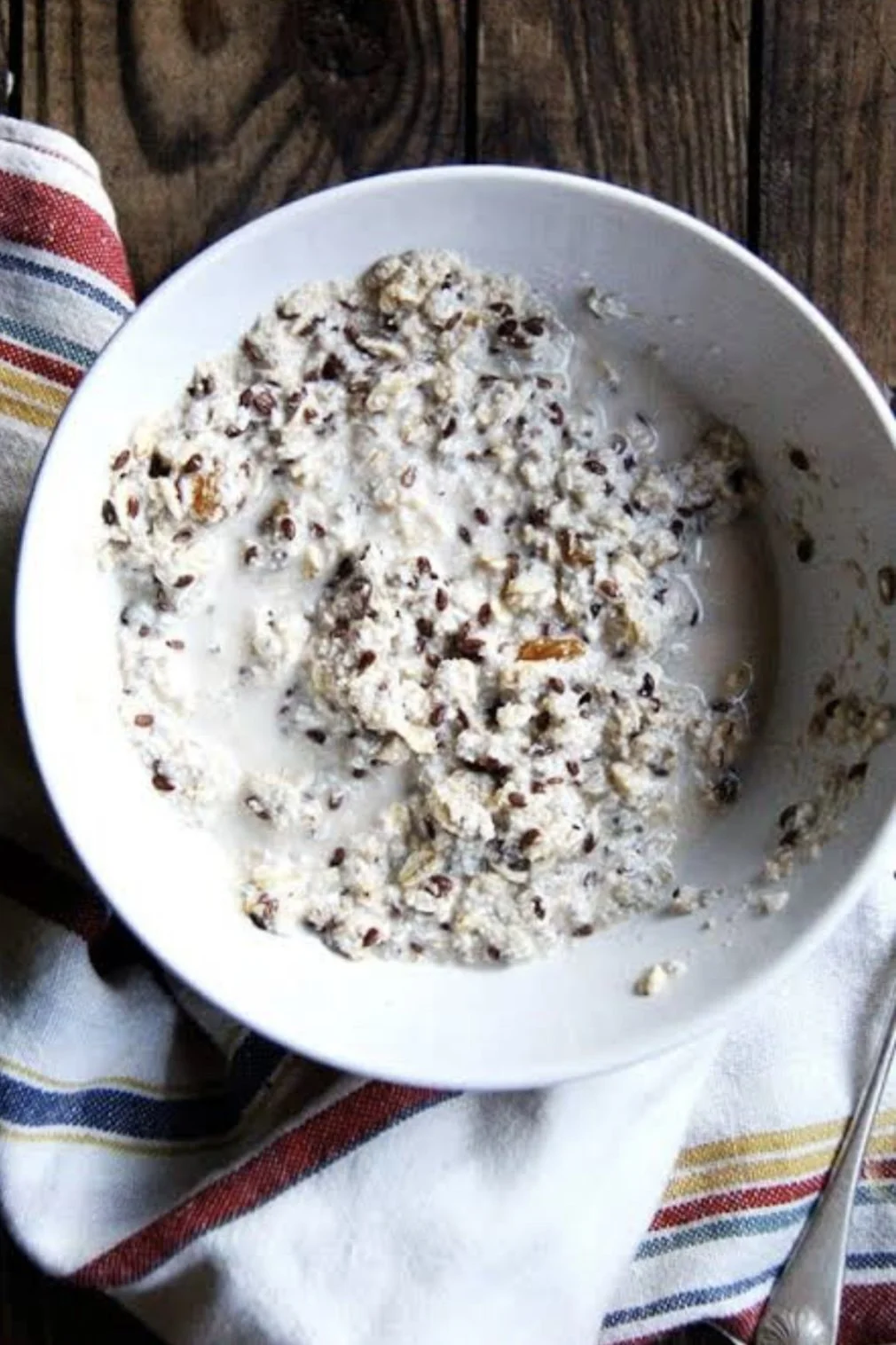 After: Layered overnight oats presented in a slender glass jar, accented with fresh seasonal fruits or berries.