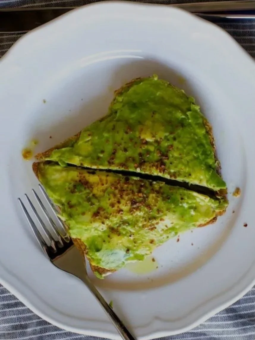 Before: A carelessly placed pieces of avocado on toast looks messy.