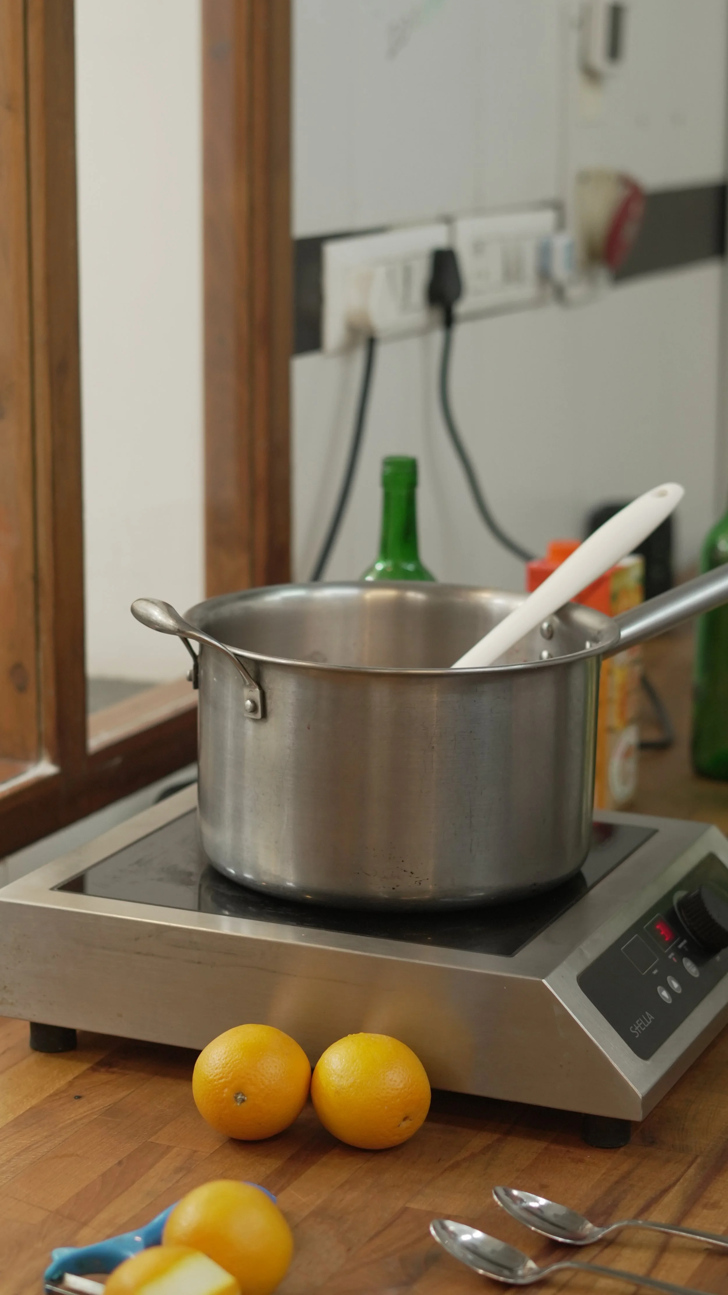 Infuse al the ingredients on low heat for 2-3 hours. Make sure it doesn’t boil else the alcohol will all evaporate.