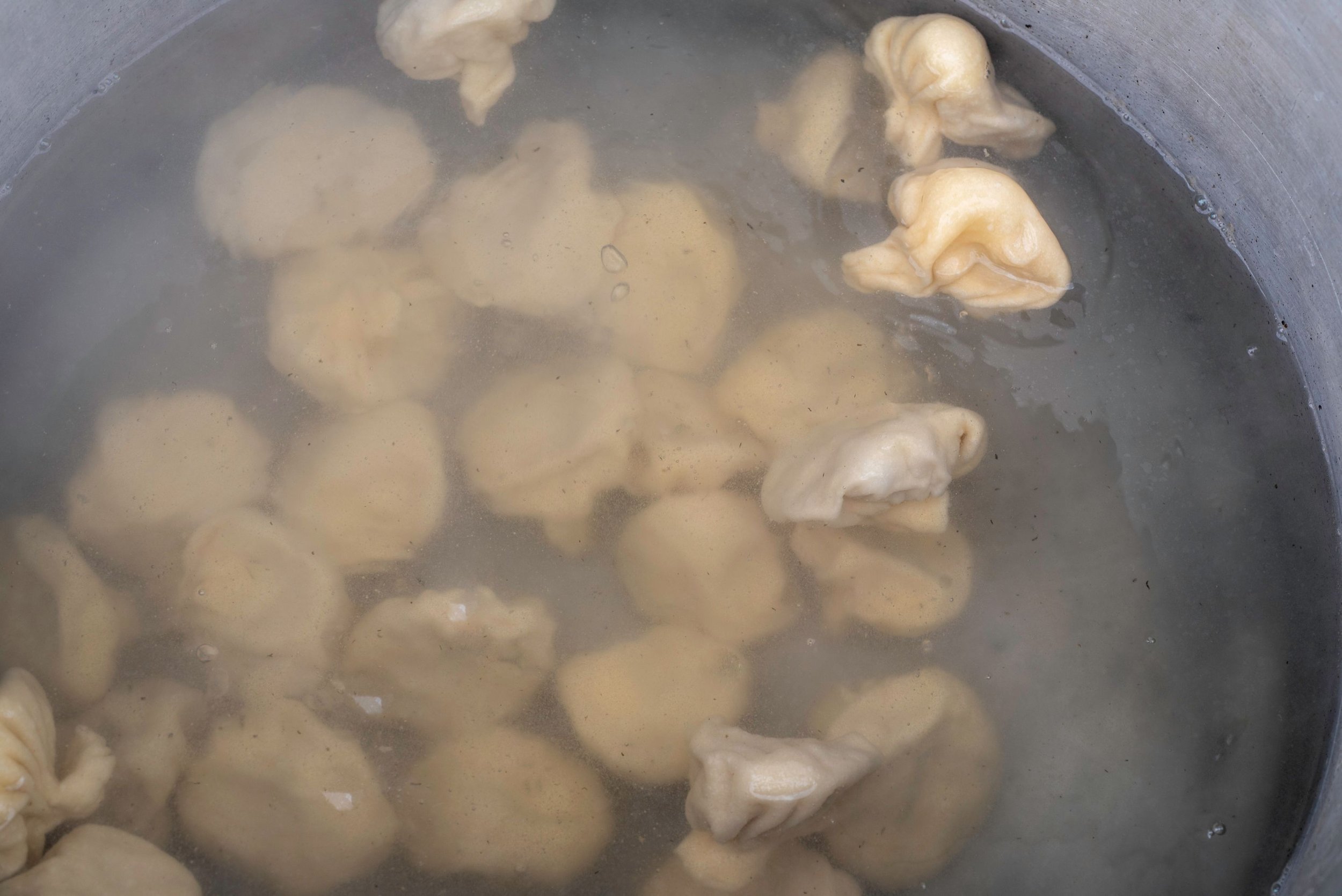 Cook the dumplings in small batches, gently shaking the pot after adding them to prevent sticking. Boil for about 7 minutes, until they float and the meat is cooked.