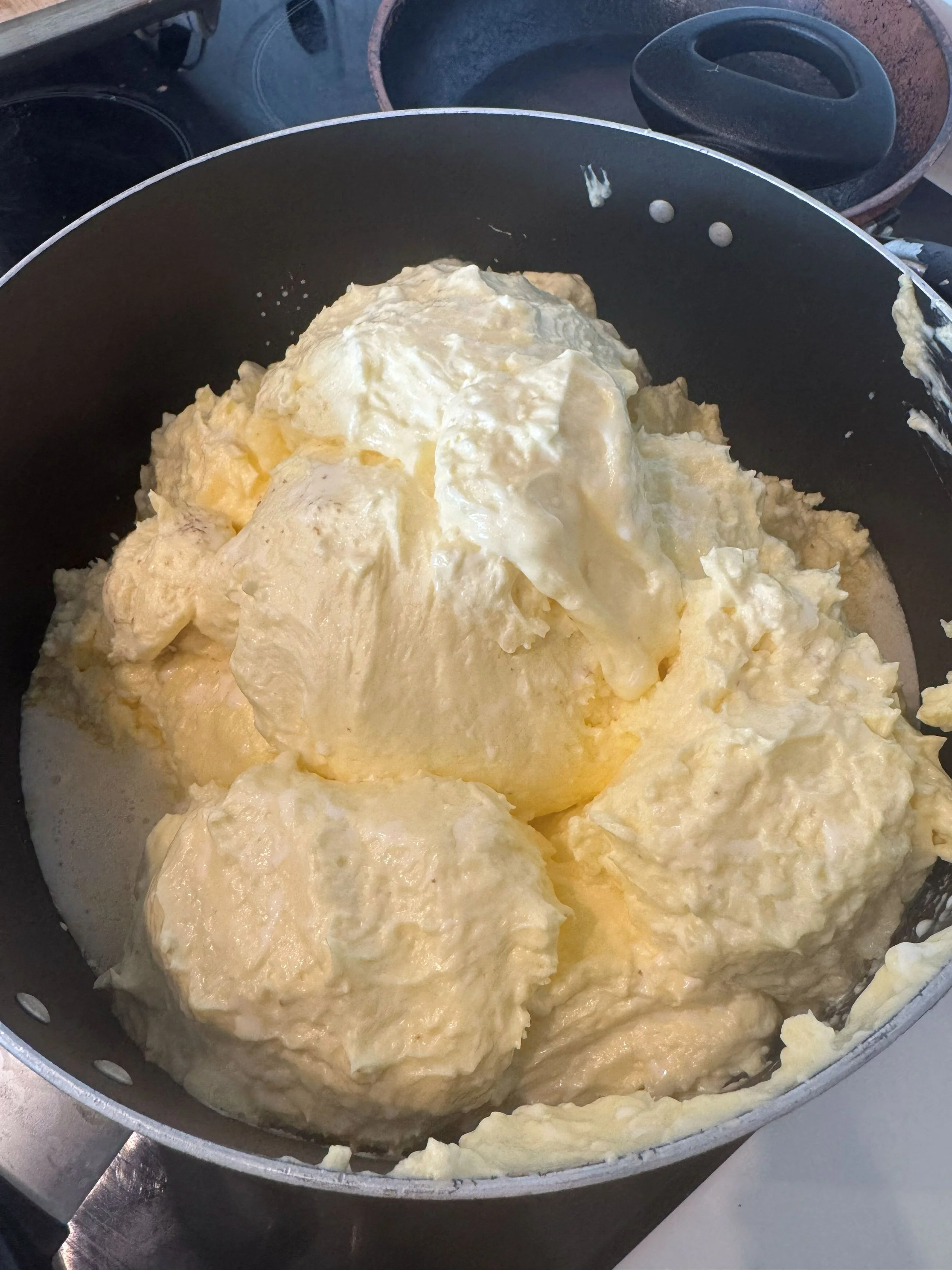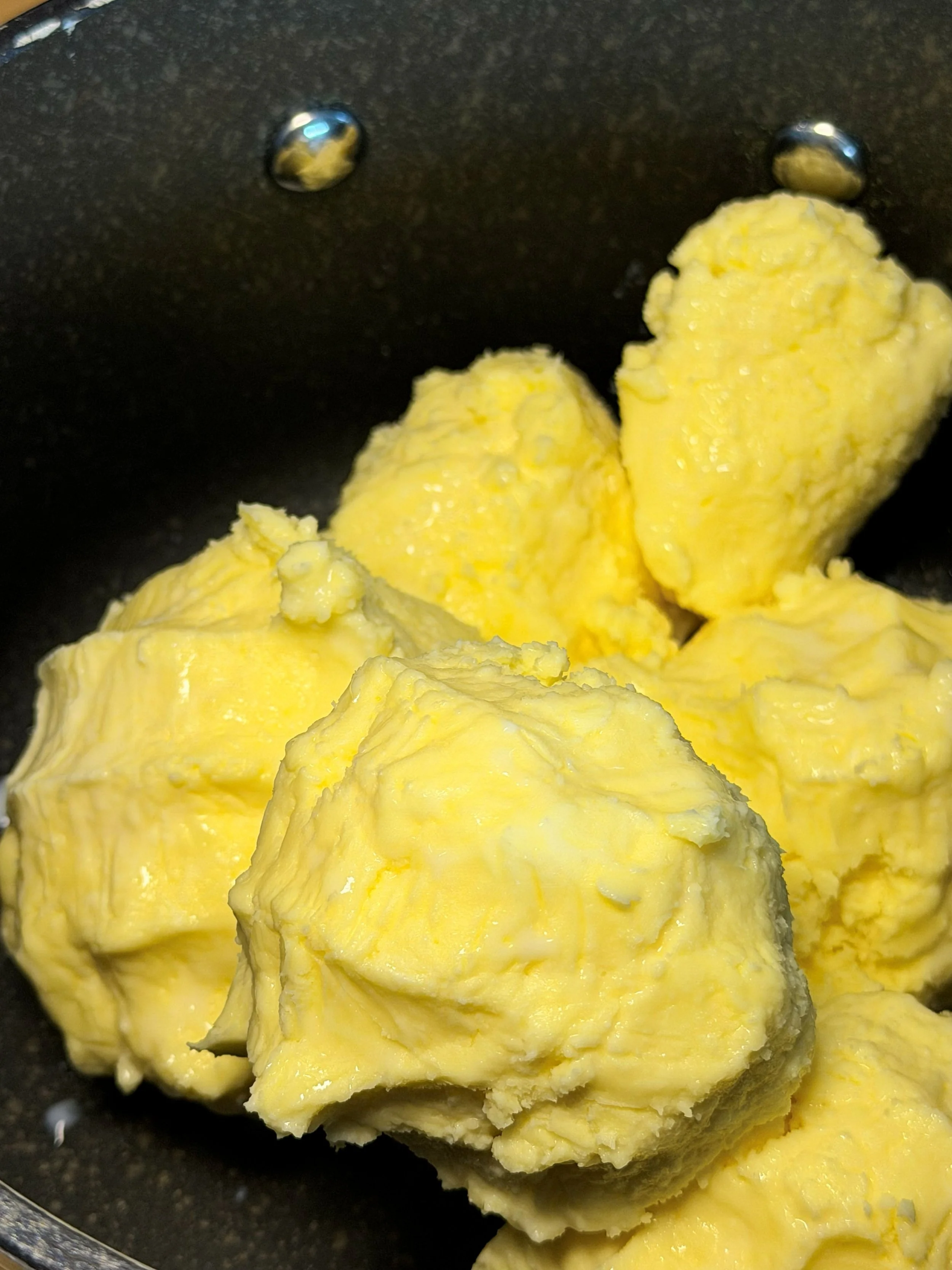 It was never framed as a ritual. It was just a routine kitchen practice in my ajji’s kitchen. Ajji would skim the malai or sai (in Marathi) from boiled milk each day. She used the same ceramic bowl to store this cream. It had a designated spot in the fridge, far away from anything that might contaminate it. The malai would quietly collect for 10–12 days until it formed a small heap. Then it was brought to room temperature. A spoonful of homemade yoghurt was added. The bowl would rest again, overnight, to ferment. We even had a word for this: virzan.